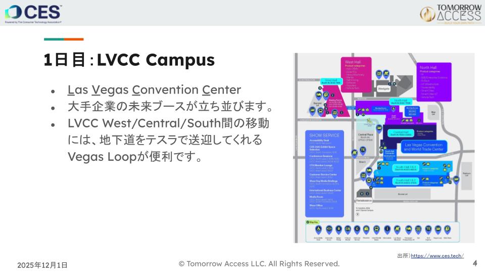 LVCC Campus / Venetian Campus / C Space Campusの各エリアではどんなことが行われているのか、日本語で簡単な解説をいたします。また、おすすめの見学モデルコースを大公開!初めての方でも安心して効率的に見学ができます。